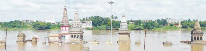 पंढरपुर, ९ सप्टेंबर २०२०: पंढरपुरातील चंद्रभागा नदीच्या पात्रात असणा-या भक्त पुंडलिक मंदिराला पुराच्या पाण्याने वेढा घातला असून नदी पात्रात असणा-या इतर मंदिरांनाही पुराच्या पाण्याने वेढा घातला आहे. मागील काही दिवसापासून उजनी व वीर धरणातूव सोडण्यात येणा-या पाण्यामुळे पंढरपुरातील चंद्रभागेच्या पाण्याची पातळी वाढली आहे. पंढरपुर सोलापूर रस्त्यावरील पुल बुजण्याच्या मार्गावर आहे.