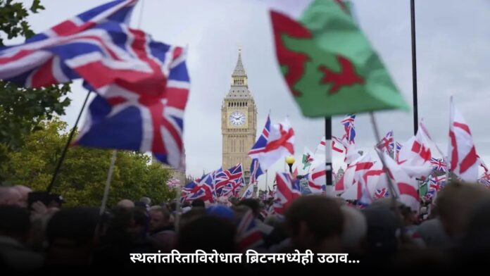 अमेरिका आणि इतर युरोपीय देशांनंतर आता ब्रिटनमध्येही स्थलांतरिता विरोधात स्थानिक लोक रस्त्यावर उतरले आहेत. ब्रिटनमध्ये स्थलांतरितांविरोधात गेल्या काही वर्षांत अंसतोष धुमसत आहे. अन्य देशातून स्थलांतरितांची संख्या वाढत असल्याने ब्रिटनच्या संस्कृतीला तडा जात असल्याचे अनेकांचे म्हणणे आहे. स्थलांतरित त्यांच्या त्यांच्या वाईट सवयी बरोबर आणीत असल्याने साहेबांना ते रुचत नाही. त्यामुळे त्यांचा असंतोष वाढत असून शनिवारी ब्रिटनमधील जनतेचा उद्रेक पाहायला मिळाला.