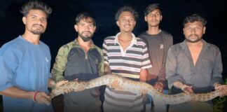 सोनेगावमध्ये घराजवळील बेंड्यात मोठा अजगर साप, सर्पमित्रांनी केले रेस्क्यू