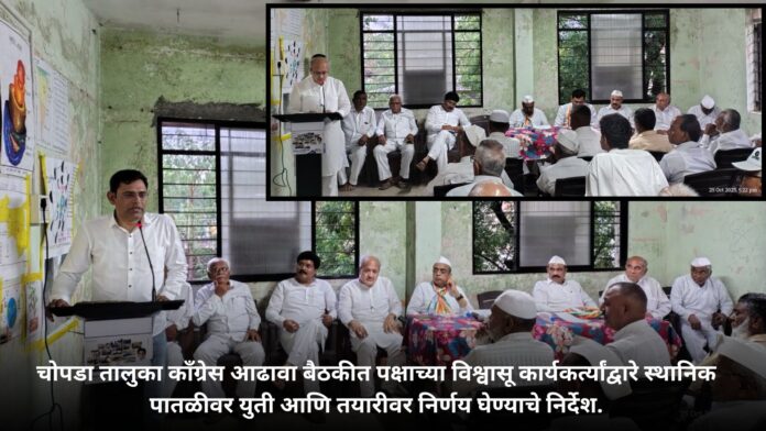 चोपडा तालुका काँग्रेस निरीक्षक संजय उमरकर म्हणाले की, येणाऱ्या काळात लढाई मतांची नसून विश्वासाची आहे. पक्षासाठी योगदान द्यावे लागेल, त्यासाठी ओंजळी भरून काम करावे. काही नेते काँग्रेस संपवायला निघाले होते, आता त्यांचे परिणाम आपण पाहत आहोत. याबाबत निर्णय स्थानिक पातळीवर घेणे महत्त्वाचे आहे. नगरपालिकेतील प्रत्येक प्रभागासाठी बैठक घेतली जाईल.