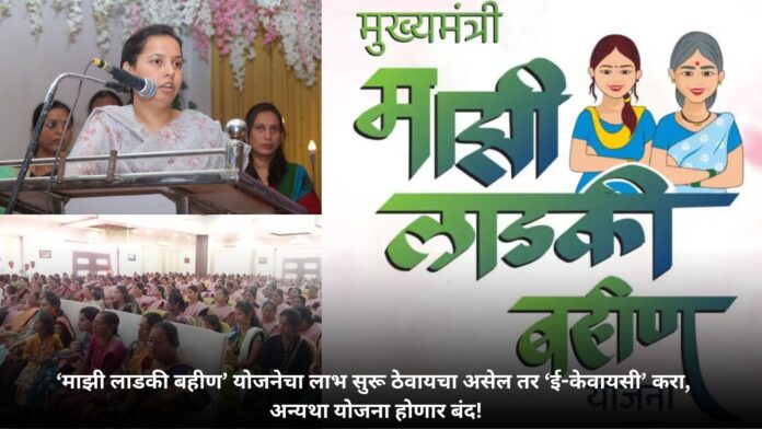 ‘मुख्यमंत्री माझी लाडकी बहीण’ योजनेचा लाभ घेणाऱ्या महिलांसाठी महत्त्वाची सूचना! योजनेत पारदर्शकता आणण्यासाठी सरकारने आता ई-केवायसी (e-KYC) करणे बंधनकारक केले आहे. येत्या दोन महिन्यांत ही प्रक्रिया पूर्ण न केल्यास लाभ बंद होण्याची शक्यता आहे.