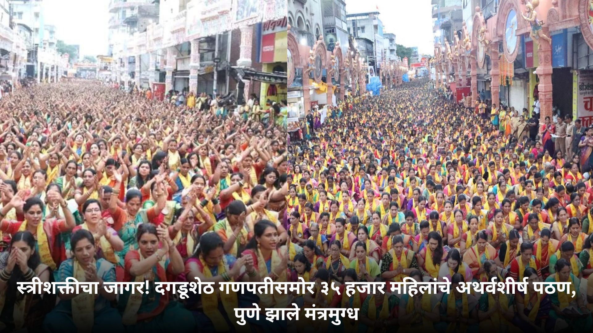 ऋषीपंचमीच्या शुभ मुहूर्तावर, ३५ हजार महिलांनी पारंपरिक वेशभूषेत एकत्र येत अथर्वशीर्ष पठण केले आणि गणरायाला वंदन केले. पहाटे २ वाजल्यापासूनच महिलांचा ओघ सुरू होता. पावसाच्या सरी कोसळत होत्या, पण भक्तीचा उत्साह तसूभरही कमी झाला नाही.