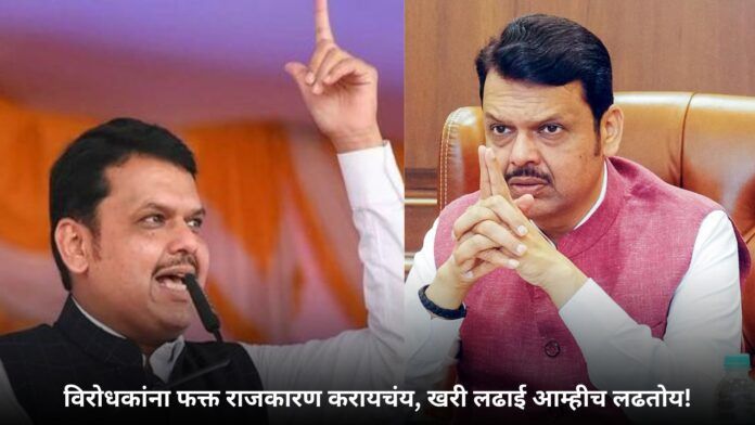 मराठा आरक्षणाच्या मुद्द्यावरून राज्यात तापलेले वातावरण अधिक चिघळलं आहे. मुख्यमंत्री देवेंद्र फडणवीस यांनी आज थेट विरोधकांवर हल्लाबोल करत स्पष्टपणे सांगितलं की, “विरोधकांना फक्त राजकारण करायचंय, पण आम्हीच ओबीसी आणि मराठा समाजाच्या खऱ्या हक्कांची लढाई लढतोय.” फडणवीस यांनी ठणकावून सांगितलं की, उद्धव ठाकरे सरकारच्या काळात गेलेलं ओबीसींचं राजकीय आरक्षण परत मिळवून देण्याचं काम त्यांच्या सरकारनेच केलं.