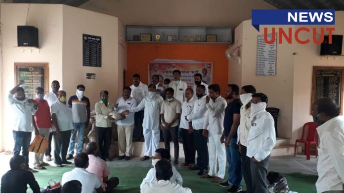 टेंभुर्णी (सोलापूर), दि. १५ जून २०२० : सोलापूर जिल्ह्यातील टेंभुर्णी येथे माढा तालुक्याचे आमदार बबनदादा शिंदे, करमाळा तालुक्याचे आमदार संजय मामा शिंदे व जिल्हा परिषद सदस्य रणजीत शिंदे यांच्या मार्गदर्शनाखाली माढा तालुका राष्ट्रवादी काँग्रेसच्या वतीने नाभिक समाजाच्या २५० बांधवास मोफत धान्य वाटप कीट देण्यात आले.