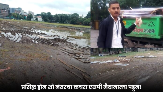 मोठी जाहिरातबाजी करत मोदी यांचा वाढदिवस हजारो ड्रोनच्या साह्याने आकाशात लाईट शो करीत पुण्यात एसपी कॉलेजच्या मैदानावर करण्यात आला. त्यावर कोट्यावधी रुपये खर्च झाले. आता त्या एस पी कॉलेजच्या मैदानावर पडलेला कचरा आणि बॅनर पिशव्या आदी गोष्टी मात्र गेला आठवडाभर तिथेच पडून होत्या शेवटी आम आदमी पार्टी विद्यार्थी आघाडीचा अध्यक्ष अनिकेत शिंदे याने २७ सप्टेंबर रोजी पुणे महानगरपालिकेकडे तक्रार केली आणि त्यानंतर आज २९ रोजी महापालिकेच्या विभागाने हा कचरा साफ केला आहे.