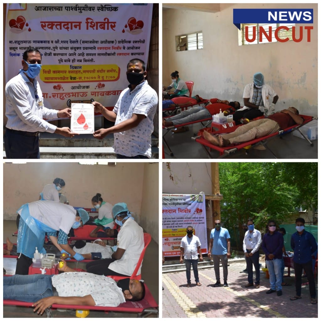 पुणे, दि. ३ जून २०२०: कोरोना प्रादुर्भावाचा काळ पाहता तसेच वेळेची गरज आणि सामाजिक भान लक्षात घेऊन व ससून शासकीय रुग्णालयात होत असलेल्या रक्ताच्या तुटवड्यावर मात करण्यासाठी मा. राहुल गायकवाड यांच्या विद्यमाने रक्तदान शिबीराचे आयोजन विडी कामगार वस्ती गणपती मंदिर समोर व्यामशाळा , वडगावशेरी येथे करण्यात आले होते.