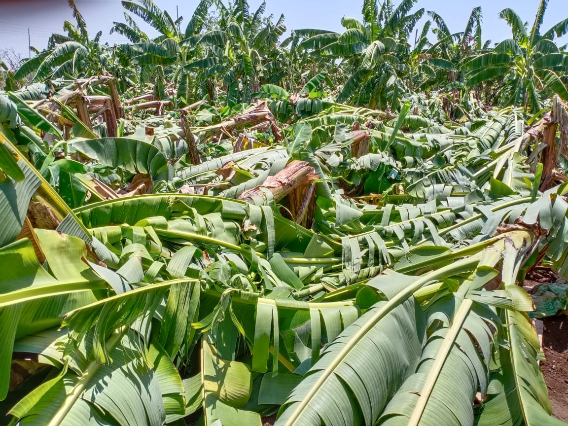 त्यातच रविवारी झालेल्या वादळी वाऱ्यासह पावसामुळे कळाशी येथील शेतकरी पोपट कांबळे यांची पाच एकर क्षेत्रातील केळीची बाग अक्षरशः जमीनदोस्त झाली. लाखो रुपये खर्चून केळीची रोपे आणि ड्रिपची व्यवस्था आणि त्यासाठी लागणारी औषधे यावर लाखोंचा खर्च करून ही बाग त्यांनी उभा केली होती.