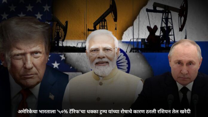 अमेरिकेचे माजी राष्ट्राध्यक्ष डोनाल्ड ट्रम्प यांनी भारतावर मोठा आर्थिक घाला घातला आहे. भारतीय वस्तूंवर त्यांनी तब्बल २५% अतिरिक्त आयात शुल्क लादलं असून, यामुळे अमेरिकेत भारतीय वस्तूंवरील एकूण टॅरिफ ५०% पर्यंत वाढलं आहे. रशियाकडून भारताने खनिज तेलाची खरेदी सुरूच ठेवल्यामुळे हा ‘आर्थिक दंड’ असल्याचं स्पष्ट करत ट्रम्प यांनी थेट भारताला इशारा दिला आहे. ट्रम्प यांच्या या निर्णयामुळे भारत-अमेरिका संबंधांमध्ये नव्या तणावाची ठिणगी पडली आहे आणि व्यापार क्षेत्रात खळबळ उडाली आहे.