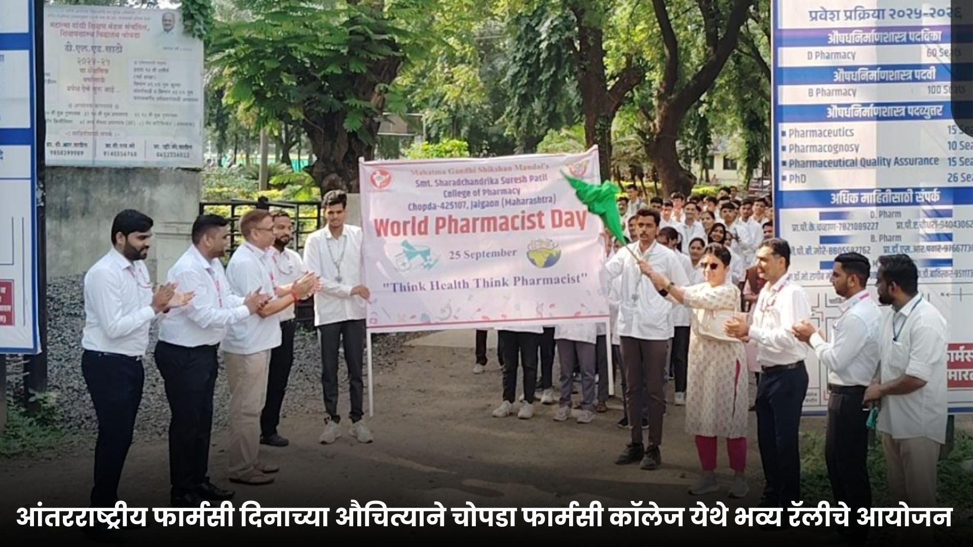 दरवर्षीप्रमाणेच यंदाही श्रीमती शरदचंद्रिका सुरेश पाटील औषधनिर्माणशास्त्र महाविद्यालय, चोपडा येथे विविध उपक्रमांचे आयोजन करण्यात आले. यंदाचा विषय “थिंक हेल्थ, थिंक फार्मसीस्ट” असा होता. या विषयाला अनुसरून एक भव्य रॅली आयोजित करण्यात आली. रॅलीची सुरुवात महात्मा गांधी शिक्षण मंडळाच्या मेन गेटवरून संस्थेच्या सचिव आदरणीय ताईसाहेब डॉ. स्मिता संदीप पाटील यांच्या हस्ते हिरवा झेंडा दाखवून झाली. विद्यार्थ्यांनी आरोग्य विषयक घोषणाबाजी करून नागरिकांचे लक्ष वेधले.