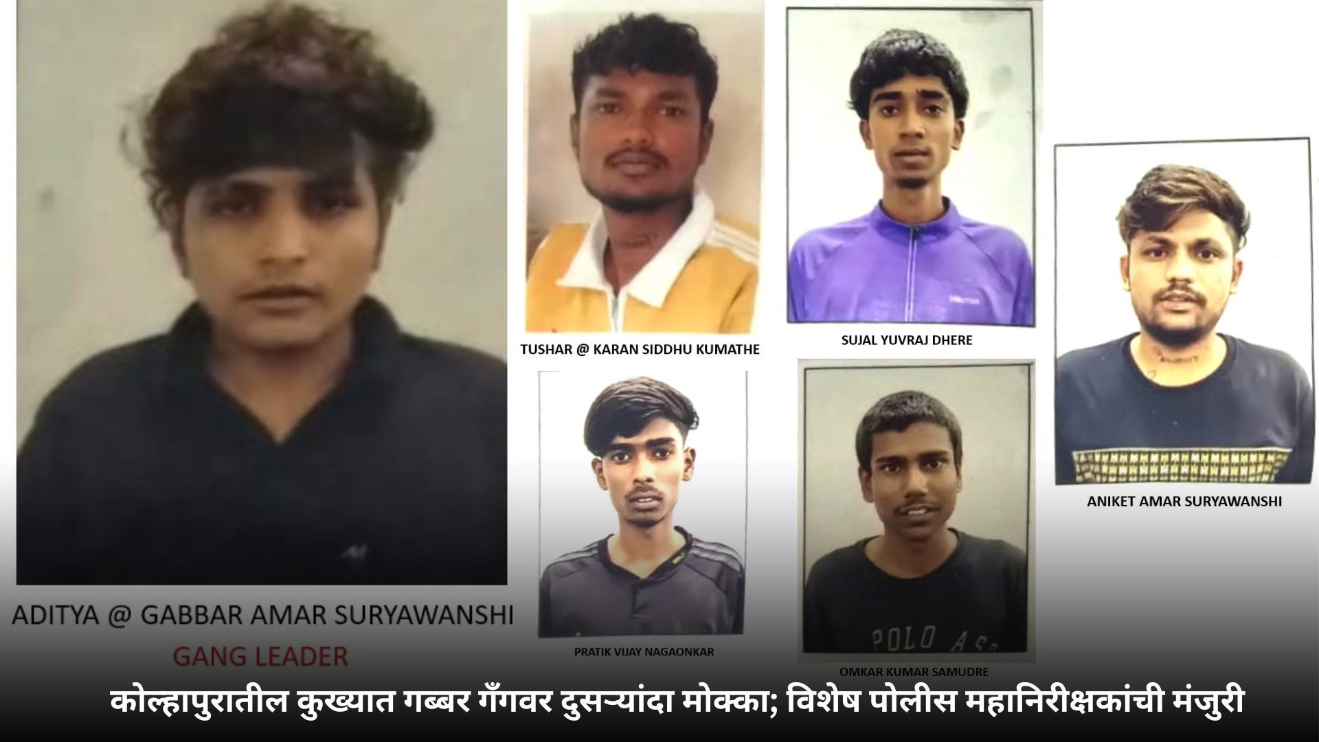कोल्हापुरातील गब्बर गँगवर दुसऱ्यांदा मोक्का अंतर्गत कठोर कारवाई करण्यात आली आहे. मुख्य गुन्हेगार आदित्य उर्फ गब्बर सुर्यवंशी, अनिकेत सुर्यवंशी, तुषार कुमठे, सुजल ढेरे, ओंकार समुद्रे आणि प्रतीक नागावकर यांच्यावर मोक्का लावण्यात आला आहे. जिल्हा पोलीस प्रमुख योगेशकुमार गुप्ता यांनी सादर केलेल्या प्रस्तावाला कोल्हापूर परिक्षेत्राचे विशेष पोलिस महानिरीक्षक सुनील फुलारी यांनी मंजुरी दिली आहे.