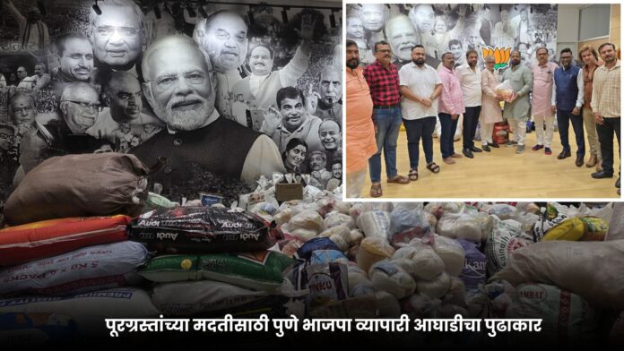 महाराष्ट्रातील पूरग्रस्त बांधवांसाठी भाजपा, पुणे शहर यांच्या वतीने मदत साहित्य संकलनाचा मोठा उपक्रम राबविण्यात आला. या उपक्रमात भाजपा व्यापारी आघाडी, पुणे शहर यांनी महत्त्वपूर्ण पुढाकार घेतला. व्यापारी आघाडीचे पदाधिकारी, कार्यकर्ते तसेच नागरिकांनी उत्स्फूर्त प्रतिसाद देत मोठ्या प्रमाणावर योगदान दिले.