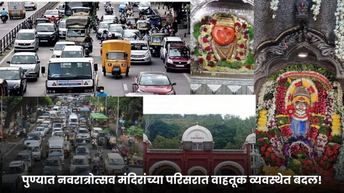 नवरात्रोत्सवाच्या पार्श्वभूमीवर पुणे पोलिस वाहतूक शाखेनं शहरातील प्रमुख मंदिरांच्या परिसरात वाहतुकीत महत्त्वाचे बदल लागू केले आहेत. सोमवार, २२ सप्टेंबरपासून हे बदल लागू झाले आहेत. विशेषतः श्री तांबडी जोगेश्वरी मंदिर, श्री चतुःश्रृंगी मंदिर, भवानी माता मंदिर आणि सारसबाग येथील महालक्ष्मी मंदिर परिसरात वाहतूक नियोजन करण्यात आले आहे.