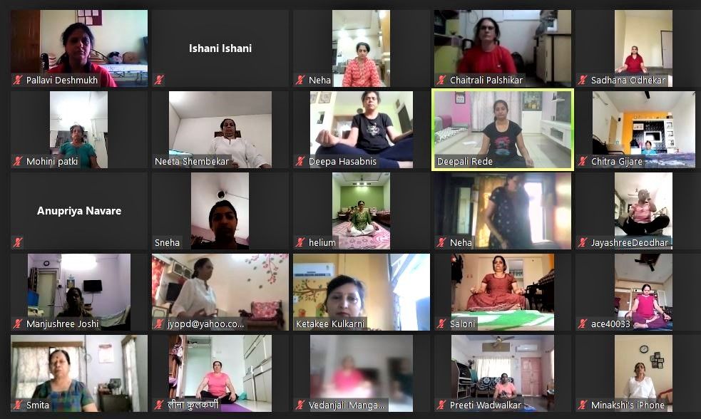 पुणे, दि. २२ जून २०२०: पुणे जिल्हा महिला आघाडी तर्फे २१ जून रोजी जागतिक योग दिनाचे औचित्य साधुन ऑनलाईन योग प्रशिक्षण कार्यशाळा आयोजित केली होती, या कार्यशाळेत १२० पेक्षा जास्त महिलांनी रजिस्ट्रेशन करून एक वेगळा विक्रम नोंदवला. बहुसंख्य महिला अतिशय उत्साहाने या पहिल्यावहिल्या ऑनलाईन योग कार्यशाळेत सहभागी झाल्या.