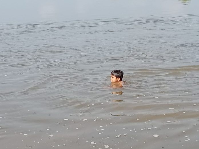 राहू,२४ ऑक्टोबर २०२० : कोरेगावभिवर (ता. दौंड) येथील अवघ्या साडेपाच वर्षाची रोशनी आव्हाळे ही चिमुरडी भीमा नदीच्या पुराच्या पाण्याने दुथडे भरुन वाहणारे नदीपात्र लिलया पार करीत भीमा नदीला कवेत घेतले.मुसळधार पावसाने भीमा नदीचे पात्र दुथडी भरुन वाहत आहे. या पुराच्या पाण्यात मोठे पूल वाहून गेले मात्र ही चिमुरडी या पाण्याला कापत नदी पात्र आरपार पोहत आहे.
