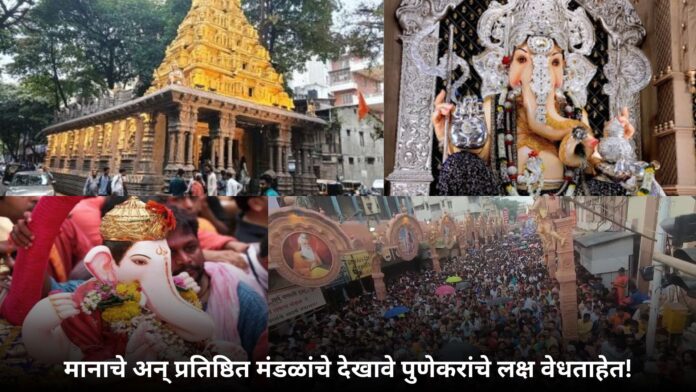 श्रीमंत दगडूशेठ हलवाई गणपती ट्रस्टने केरळमधील प्रसिद्ध श्री पद्मनाभ स्वामी मंदिराची सुमारे १०० फूट उंचीची प्रतिकृती साकारली आहे. यात रामायण, कृष्णलीला आणि सप्तऋषींचे चित्रण करण्यात आले आहे. शहरातील ही मानाची आणि प्रतिष्ठित मंडळे आकर्षक देखाव्यांद्वारे पुणेकरांचे लक्ष वेधत आहेत.