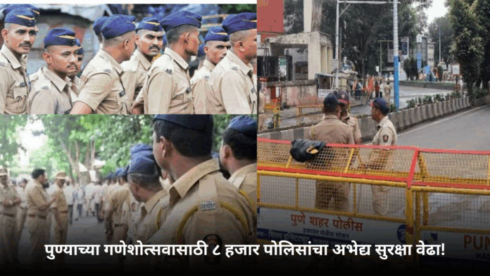 पुण्याच्या जगप्रसिद्ध गणेशोत्सवासाठी यंदा पोलिसांकडून अभूतपूर्व सुरक्षा व्यवस्था उभारण्यात आली आहे. विसर्जन मिरवणूक शांततेत पार पाडण्यासाठी तब्बल ८ हजारांहून अधिक पोलिस कर्मचारी, होमगार्ड्स आणि राज्य राखीव दलाचे जवान तैनात राहणार आहेत.