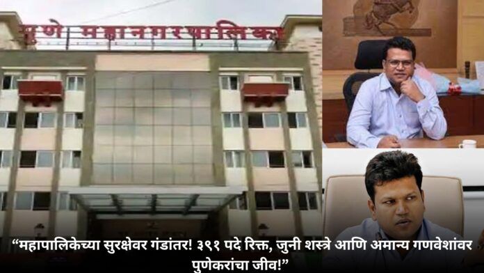 पुणे महापालिकेच्या सुरक्षा विभागाची स्थिती गंभीर बनली आहे. ६६६ मंजूर कायमस्वरूपी पदांपैकी तब्बल ३९१ पदे रिक्त असल्यामुळे सुरक्षा व्यवस्थेवर गंभीर प्रश्नचिन्ह निर्माण झाले आहे.