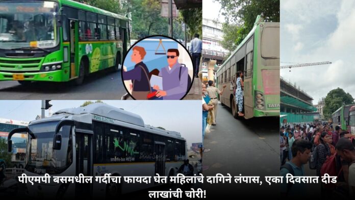 पुणे शहरातील पीएमपी बसमध्ये प्रवास करणाऱ्या महिलांना टार्गेट करून चोरट्यांनी दीड लाख रुपयांचे सोन्याचे दागिने चोरी केल्याच्या तीन घटना उघडकीस आल्या आहेत. नगर रस्ता, विश्रांतवाडी आणि वाकडेवाडी परिसरात या चोर्यांची नोंद झाली असून, बसमधील गर्दीचा फायदा घेत चोरट्यांनी हे गुन्हे केले आहेत.