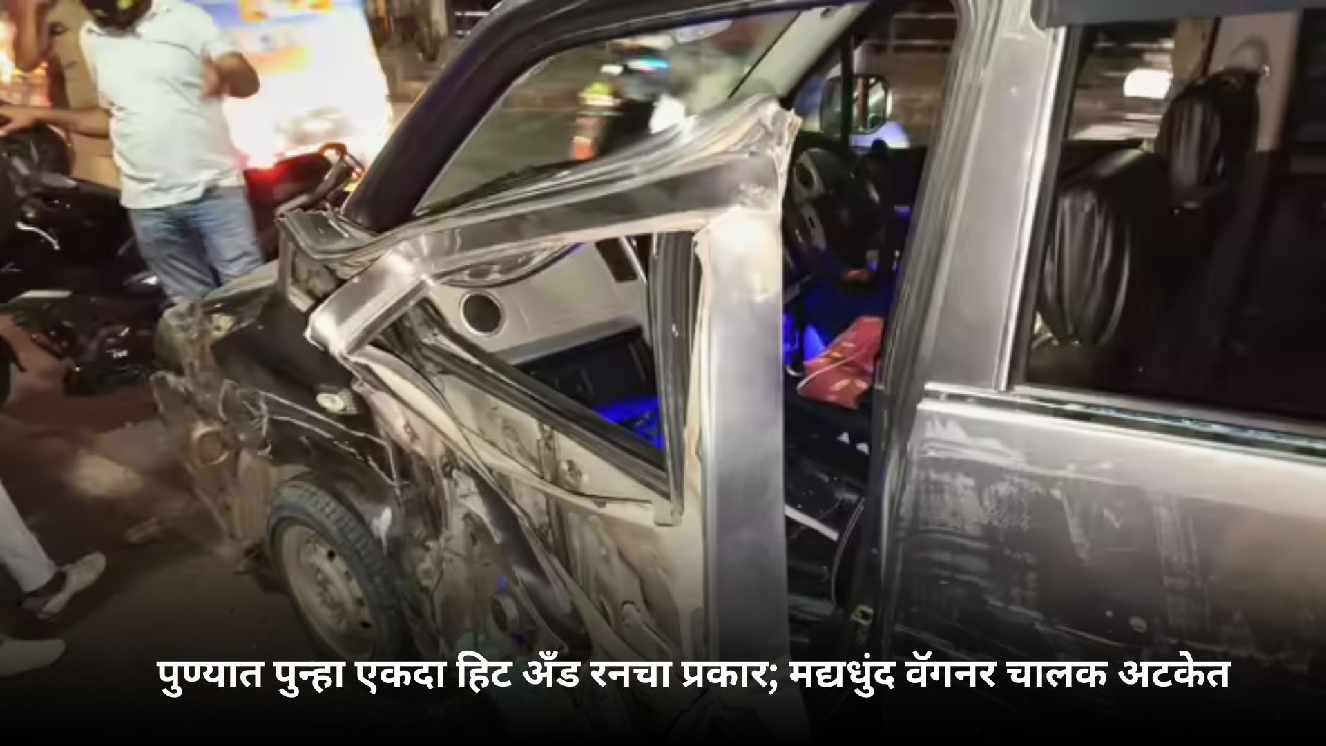 ही घटना शनिवारी सायंकाळी पुण्यातील बालगंधर्व रंगमंदिराजवळील विठ्ठल रामजी शिंदे पुलाजवळ घडली. एका वॅगनर कार चालकाने भरधाव गाडी चालवत दुचाकीस्वाराला धडक दिली आणि फरफटत नेत ओंकारेश्वर मंदिरापर्यंत गाडी नेली. या अपघातात इतर दोन जणांनाही धडक बसली. अखेरीस कार दुभाजकाला धडकल्याने तिचा चेंदामेंदा झाला.