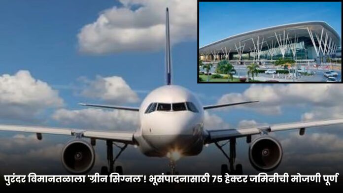 बहुचर्चित पुरंदर येथील प्रस्तावित छत्रपती संभाजीराजे आंतरराष्ट्रीय विमानतळाच्या भूसंपादन प्रक्रियेला अखेर वेगाने सुरुवात झाली आहे. एकूण सात गावांमधील जमीन संपादनाची प्रक्रिया सुरू झाली असून, पहिल्याच दिवशी, शुक्रवारी (दि. २६) तीन गावांतील सुमारे ७५ हेक्टर जमिनीची मोजणी ड्रोन तंत्रज्ञानाच्या मदतीने पूर्ण करण्यात आली आहे. जिल्हाधिकारी जितेंद्र डुडी यांनी ही माहिती दिली.