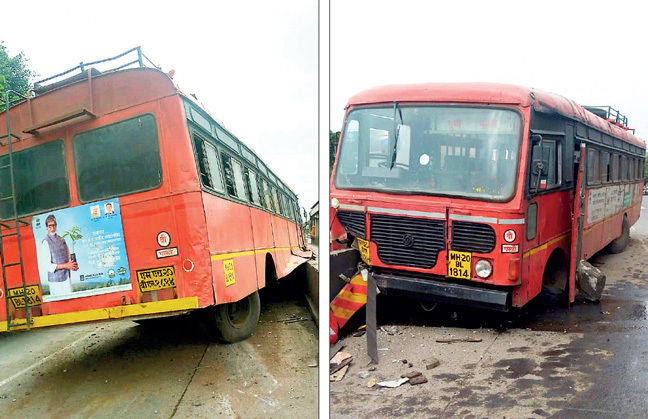 याबाबत पोलिसांनी दिलेल्या माहितीनुसार, धुळे आगारातील बस (एम.एच-२०बी.एल-३४२६) साक्रीहुन पुण्याच्या दिशेने निघालेली धुळे आगाराची एसटी बस पहाटे साडेचार वाजण्याच्या सुमारास नाशिक-पुणे महामार्गावर भोसरी पोलीस ठाण्यासमोर आली. त्या बसचा वेग एवढा जोरात होता की तिने रस्त्याच्या कडेला उभा असलेल्या ट्रकला पाठीमागून धडकली. त्यावेळी दाट धुके असल्यामुळे हा ट्रक बस चालकाला दिसून आला नाही. त्यामुळे हा अपघात झाला. याप्रकरणी अधिक तपास पोलीस करीत आहेत.