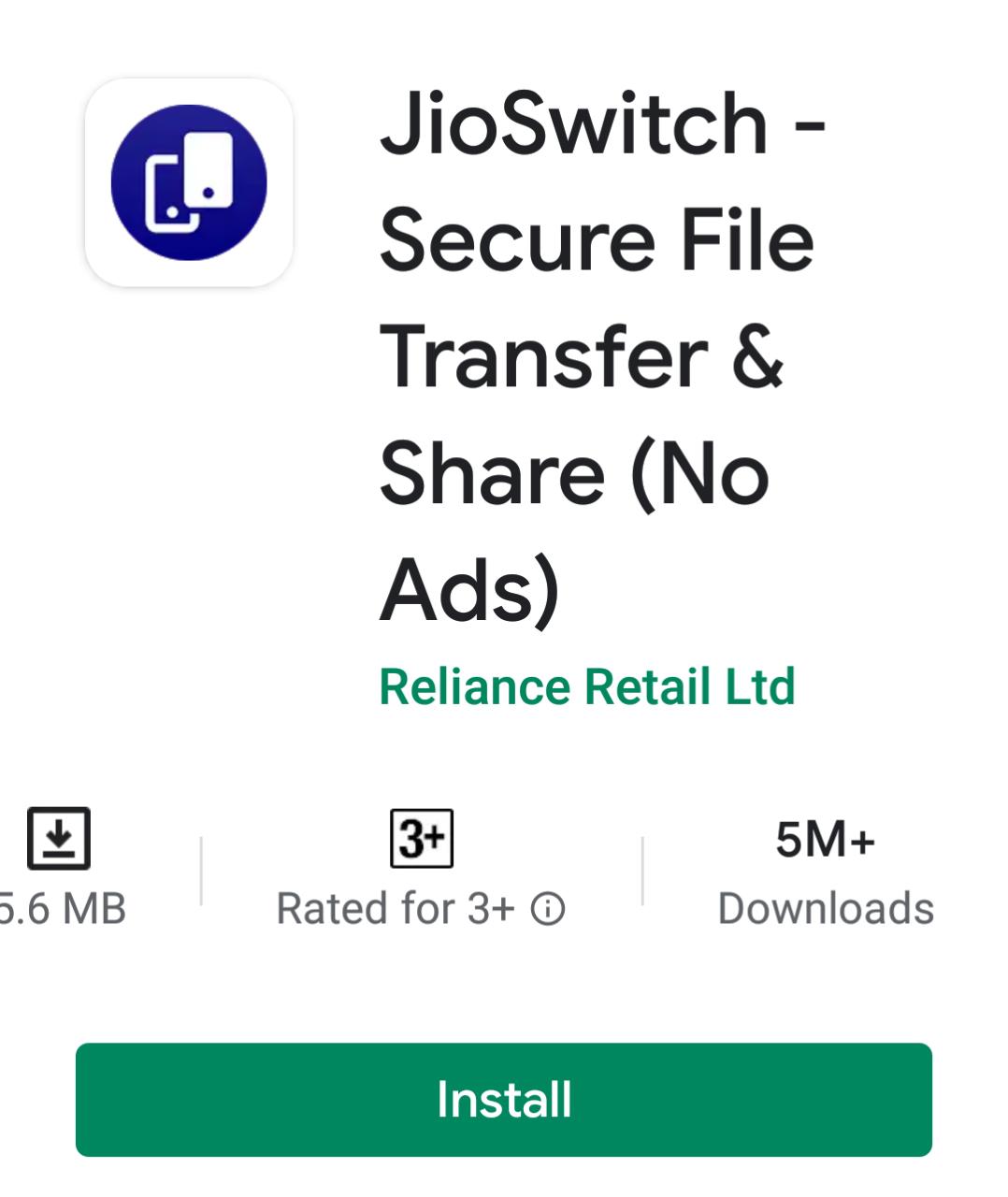 गुगल प्ले स्टोअर वर यासाठी एक पर्यायी ॲप आहे ते म्हणजे ‘जिओस्विच’. जिओस्विच हे ॲप रिलायन्स रिटेल लिमिटेड या कंपनीने तयार केलेले आहे. प्ले स्टोअर वर हे ॲप २०१६ पासूनच उपलब्ध आहे. परंतु आता चिनी ॲप ला पर्याय म्हणून भारतामध्ये हे मोठ्या प्रमाणावर डाउनलोड केले जात आहे. आतापर्यंत हे ॲप ५० लाख वेळा डाऊनलोड करण्यात आले आहे.