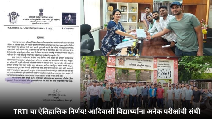 पुणे, 28 ऑगस्ट 2025 — आदिवासी विद्यार्थ्यांसाठी एक दिलासादायक आणि ऐतिहासिक निर्णय घेण्यात आला आहे. आदिवासी संशोधन व प्रशिक्षण संस्था (TRTI) मार्फत प्रशिक्षण घेतलेल्या विद्यार्थ्यांना आता एकाचवेळी अनेक स्पर्धा परीक्षांना बसण्याची परवानगी मिळाली आहे.