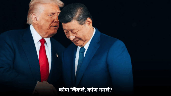 अमेरिकेने चीनच्या वर्चस्वापासून मुक्त होण्याचा प्रयत्न केला नाही किंवा करत नाही, असे नाही. ट्रम्प यांनी युक्रेनशी केलेल्या करारात त्यांच्या दुर्मिळ पृथ्वी खनिजांना सुरक्षित करण्यावर लक्ष केंद्रित केले होते. ट्रम्प हे या खनिजांचा पुरवठा सुरक्षित करण्यासाठी आशिया दौरा करत आहेत. जपान, मलेशिया, व्हिएतनाम आणि कंबोडियासोबतचे त्यांचे करार या संदर्भात उदाहरणे म्हणून पाहिले जाऊ शकतात. तथापि, त्यांच्या अंमलबजावणी करण्यासाठी बराच वेळ आणि पैसा लागेल. ही परिस्थिती लक्षात घेऊन चीनने ट्रम्प यांना त्यांच्या व्यापार धोरणांवर माघार घेण्यास भाग पाडले. अमेरिकेकडे दुसरा पर्याय नाही. कारण ती चीनला दुखावू शकत नाही. दक्षिण कोरियातील बुसान येथे ट्रम्प आणि जिनपिंग यांच्यातील उच्चस्तरीय बैठक जवळजवळ दोन तास चालली. बैठक संपल्यानंतर ट्रम्प यांनी ‘एअर फोर्स वन’मधून घोषणा केली, की ते चीनवरील कर दहा टक्क्यांनी कमी करत आहेत. ते तात्काळ लागू होतील. ट्रम्प यांनी सांगितले, की ते चीनवरील कर दहा टक्क्यांनी कमी करण्यास सहमत झाले आहेत. त्या बदल्यात, चीनने अमेरिकन सोयाबीनची खरेदी पुन्हा सुरू करण्याचे, ‘रेअर अर्थ मॅग्नेट’ निर्यात सुरू ठेवण्याचे आणि फेंटॅनिलच्या बेकायदेशीर व्यापाराविरुद्ध कारवाई करण्याचे आश्वासन दिले. ही बैठक २०१९ नंतर दोन्ही नेत्यांमधील पहिलीच समोरासमोर बैठक होती. ही बैठक ट्रम्प यांच्या आशिया दौऱ्याचा शेवटचा टप्पा होती. त्यांनी दक्षिण कोरिया, जपान आणि आग्नेय आशियाई देशांसोबत नवीन व्यापार करारांवरही चर्चा केली. बैठक सुरू होण्यापूर्वी, ट्रम्प यांनी चीनसोबत करार शक्य असल्याचे संकेत दिले होते. जिनपिंग यांनी एका भाषांतरद्वारे ट्रम्प यांना सांगितले, की बुसानमधील त्यांच्या बैठकीत दोन्ही देशांच्या व्यापार वाटाघाटीकर्त्यांनी एक मूलभूत करार केला आहे. चीनची सरकारी वृत्तसंस्था, शिन्हुआनुसार, शी यांनी असेही म्हटले, की चीनचा विकास ट्रम्प यांच्या ‘अमेरिकेला पुन्हा महान बनवण्याच्या’ ध्येयाशी सुसंगत आहे. या वर्षाच्या सुरुवातीपासून दोन्ही नेत्यांमध्ये तीन टेलिफोन संभाषणे झाली आहेत. असंख्य पत्रांची देवाणघेवाण झाली आहे. ते नियमित संपर्कात राहिले आहेत. त्यांनी सांगितले, की दोन्ही नेत्यांच्या नेतृत्वाखाली चीन-अमेरिका संबंध बऱ्याच प्रमाणात स्थिर राहिले आहेत. गेल्या आठवड्याच्या शेवटी मलेशियामध्ये दोन्ही देशांच्या व्यापार संघांनी केलेल्या प्रगतीने या बैठकीचा मजबूत पाया रचला असल्याचे शी यांनी पुढे सांगितले. शांतता प्रस्थापित करण्यासाठी ट्रम्प यांच्या प्रयत्नांचे त्यांनी कौतुक केले. शी म्हणाले, की जगातील दोन सर्वात मोठ्या अर्थव्यवस्थांमधील मतभेद त्या