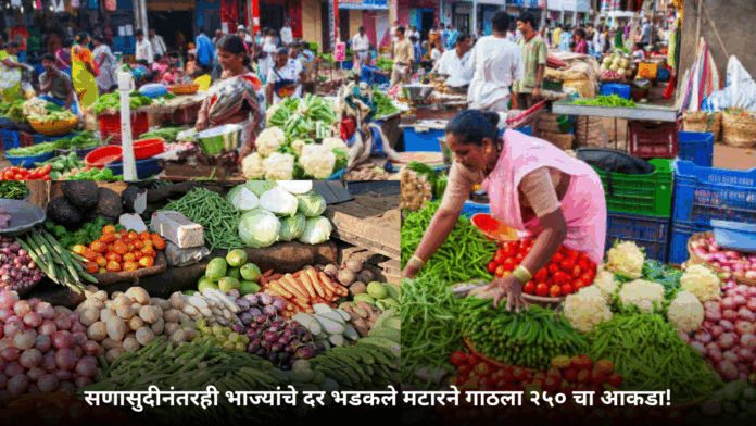 अतिवृष्टीमुळे भाजीपाल्याच्या पिकांचे मोठे नुकसान झाल्याने आणि आवक लक्षणीयरीत्या घटल्यामुळे, सणासुदीनंतरही भाज्यांचे दर गगनाला भिडले आहेत. पिंपरीतील लालबहादूर शास्त्री भाजी मंडईमध्ये भाज्यांनी सामान्य नागरिकांच्या खिशाला चांगलीच कात्री लावली आहे. रोजच्या वापरातील भाज्या सामान्य माणसाच्या आवाक्याबाहेर गेल्या आहेत.