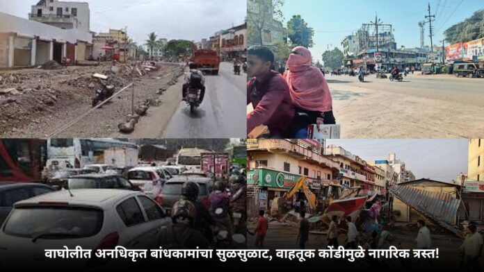 पूर्व हवेली तालुक्यातील वाघोली परिसरात अनधिकृत बांधकामांचा मोठा सुळसुळाट सुरू झाला आहे. कोणत्याही शासकीय परवानगीशिवाय गगनचुंबी इमारती, पत्र्याचे शेड आणि व्यावसायिक गाळे सर्रास उभे राहत आहेत. यामुळे रस्ते अरुंद झाले असून, पार्किंगची सोय नसल्याने वाहतूक कोंडीची मोठी समस्या निर्माण झाली आहे. नागरिक या स्थितीसाठी पीएमआरडीए (PMRDA) आणि महापालिकेला जबाबदार धरत आहेत.